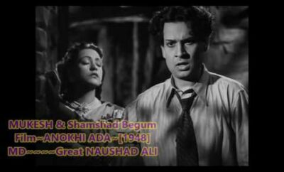 Movie: Anokhi AdaRelease: 1948Featuring Actors: Naseem Banu, SurendraMusic Directors: Naushad AliLyrics: Shakeel Badayuni.Singers: MukeshTrivia: Lyrics in Hindi ये...