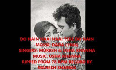 Movie: DadaRelease: 1966Featuring Actors: Dara Singh, SaveetaMusic Directors: Usha KhannaLyrics: Asad BhopaliSingers: Mukesh, Usha KhannaTrivia: Lyrics in Hindi दो...