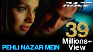 Pehli Nazar Mein is a hindi song from the 2008 movie Race. The chartbuster is sung by Atif Aslam. The song is composed by Pritam and written by Sameer. The video features Saif Ali Khan, Akshaye Khanna, and Bipasha Basu. The song became a smashing hit upon releasing garnering worldwide acclaim.